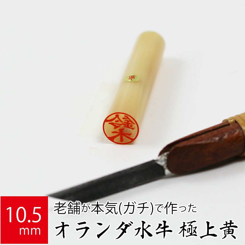 【エントリーでポイント10倍】印鑑 はんこ 銀行印 オランダ水牛 極上黄 ケース無し 実印 認印 個人印 ハンコ 仕事 職場 10.5mm丸×60mm 10年保証