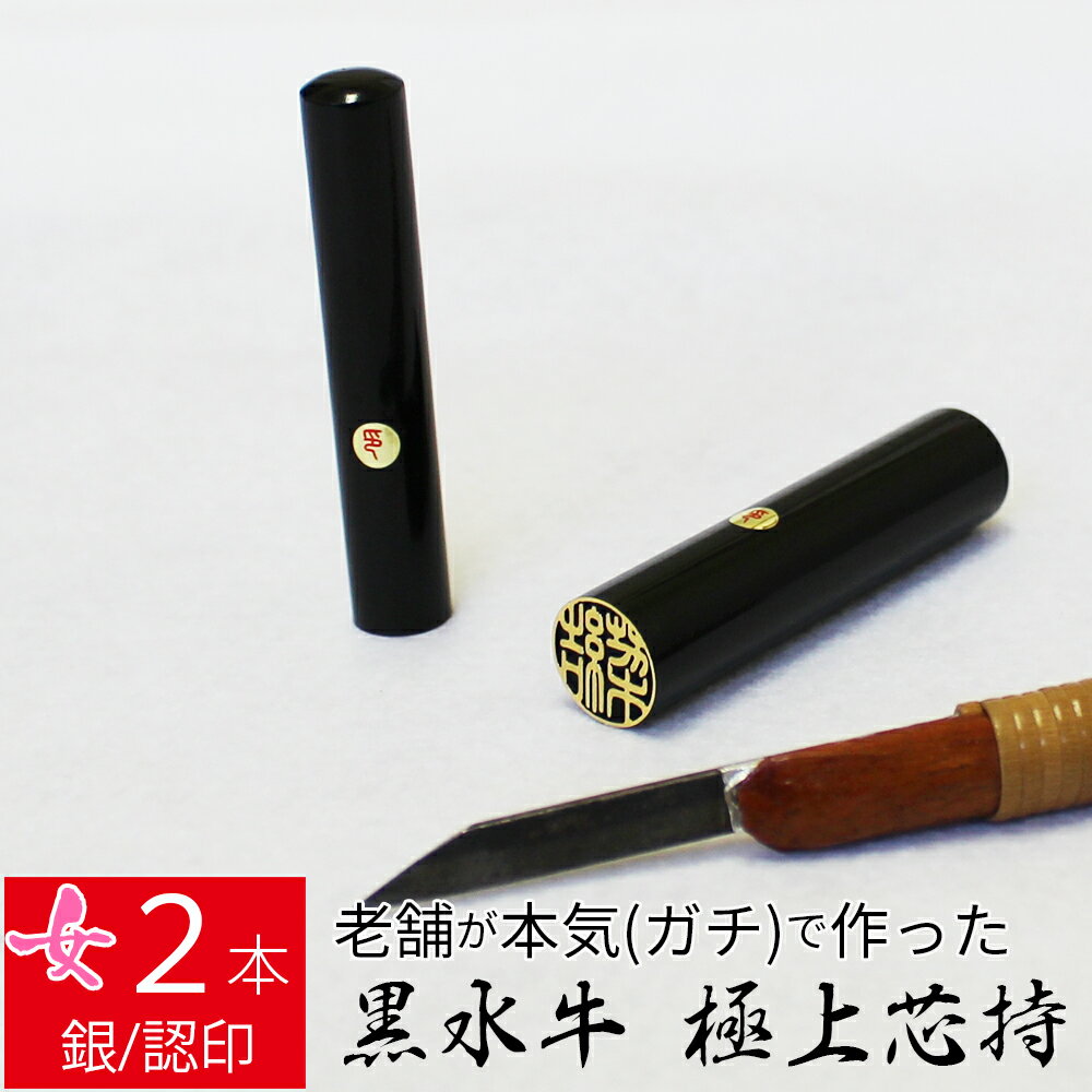 【エントリーでポイント10倍】印鑑 はんこ 銀行印 黒水牛 2本セット ケース無し 印面シルバー 実印 認印 個人印 ハンコ 仕事 職場 12mm 15mm 10年保証
