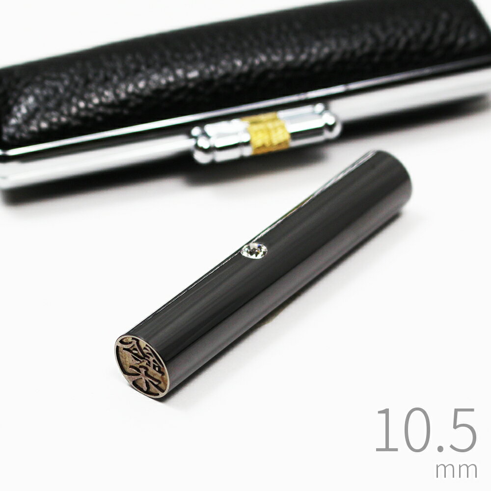 【エントリーでポイント10倍】印鑑 はんこ プレミアム チタン 極 ブラック 牛モミケース付き 判子 実印 銀行印 認印 10.5mm丸 ラインストーン