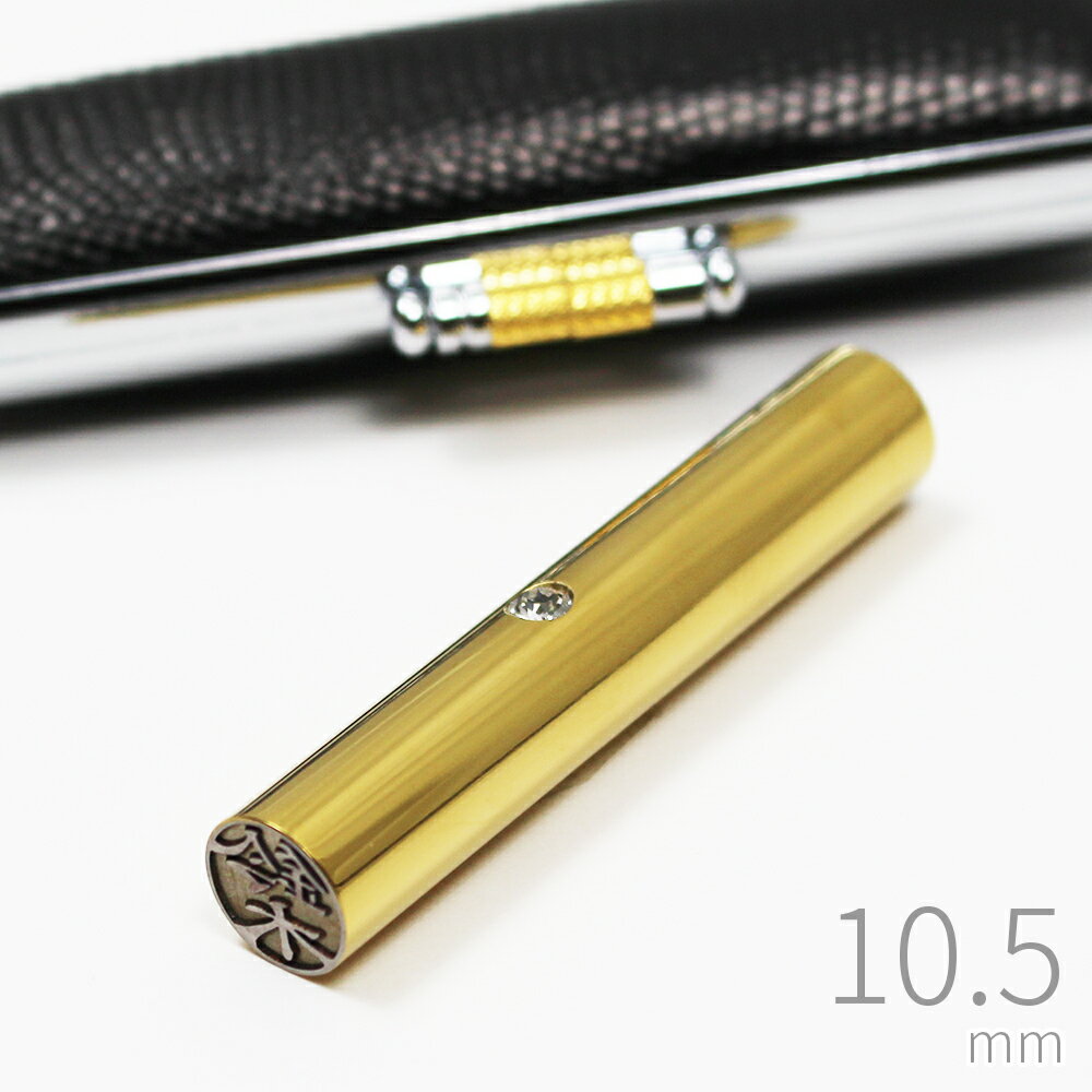 【エントリーでポイント10倍】印鑑 はんこ プレミアム チタン 極 ゴールド 牛モミケース付き 判子 実印 銀行印 認印 10.5mm丸 ラインストーン