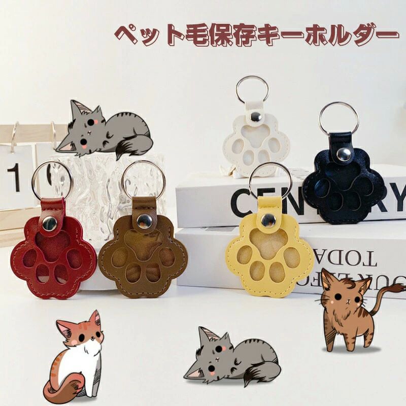 - ペットの毛や爪、ひげなどを入れて持ち歩ける肉球型のキーホルダ