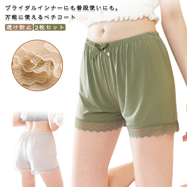 2枚セット ペチパンツ 裾レース ペチコート 透け防止 インナーパンツ タップパンツ ショート丈 アンダーウェア 下着 ルームウェ