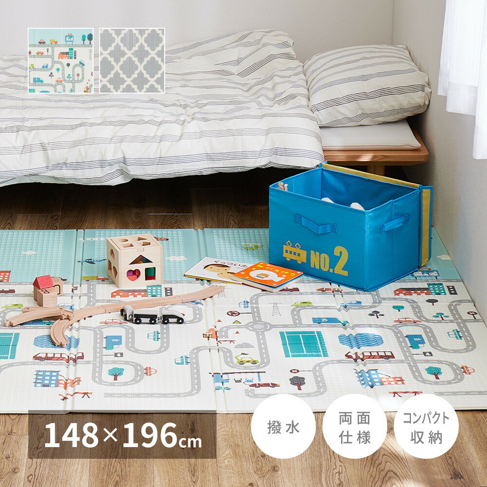 クッションプレイマット エクスシリーズ 約148×196cm 撥水 耐熱 リバーシブル コンパクト 水拭きOK 折りたたみ プレイマット フロアマット 防音 ベビーマット ..