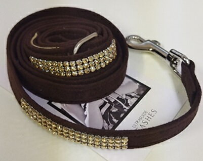 ★Susan Lanci★スーザンランシー3 Row Gold Giltmore Leashスワロフスキー付リード(チョコレート)