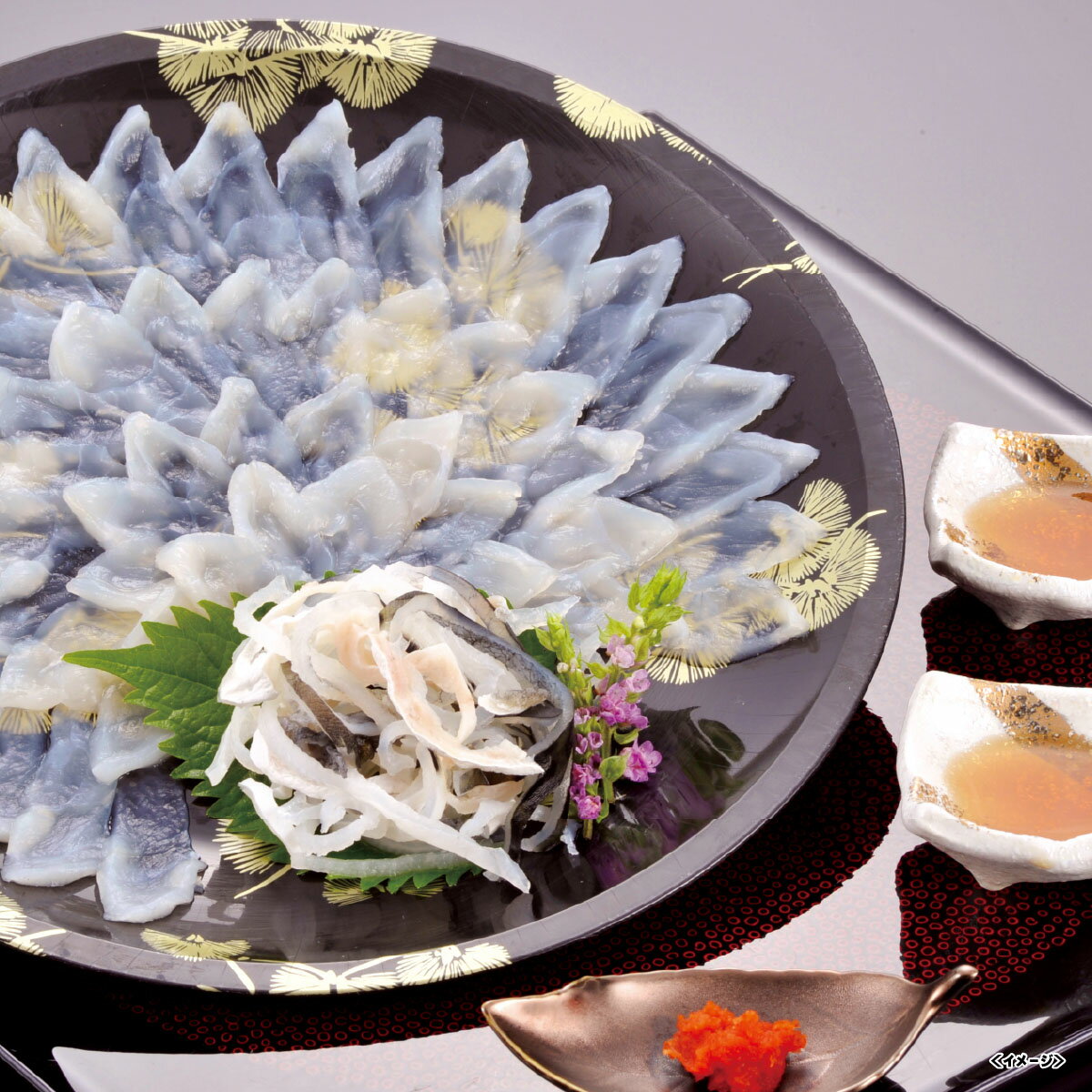 - 山口県を代表する味覚・とらふぐを、魚のプロとして50年培った目利きで仕入れ、独自の熟成技術で刺身に仕上げたこだわりのセットです。