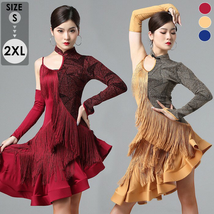 - 社交ダンス モダン ドレス ラテン フリンジワンピース 衣装 発表会 レディース スパンコール衣装 ダンス衣装 舞台 ステージ衣装