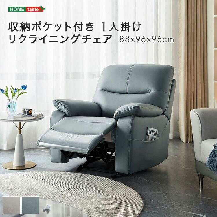 リクライニングチェア 一人掛け 肘掛付き クッション性 収納ポケット付き 座り心地 拭ける ブルージュ/ライトグレー