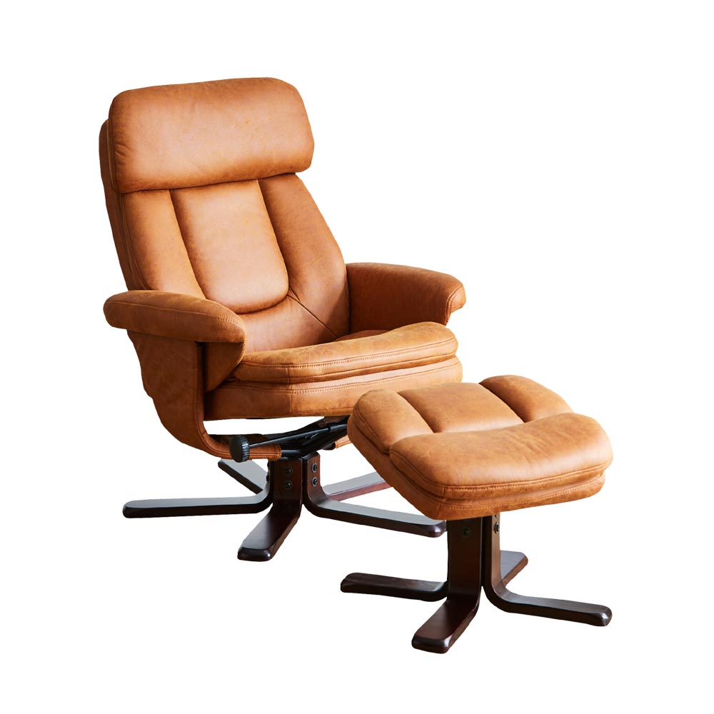 - 後藤家具物産 パーソナルチェアー PC-MBL-LBR ライトブラウン PC ファブリックレザー オットマン付き | ..
