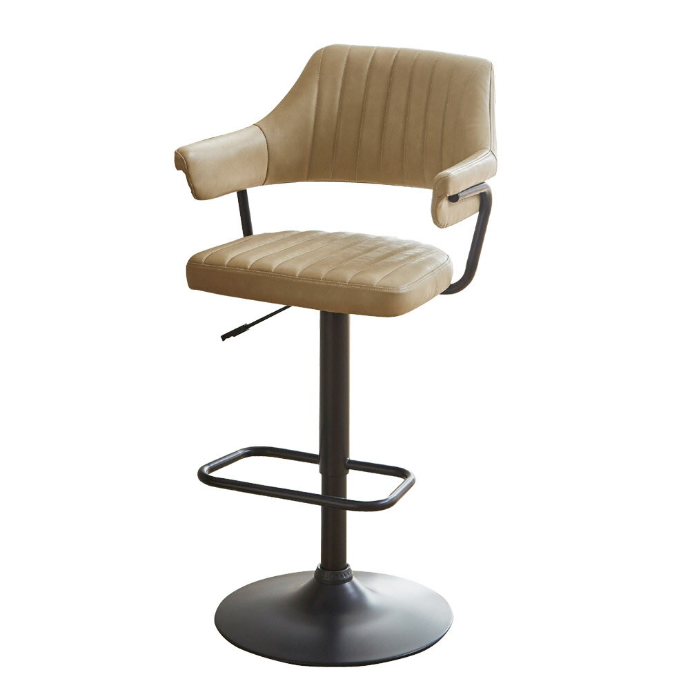 後藤家具物産 カウンターチェアー CC-IZ-CM ベージュ色 バーチェアー モダン 肘付 回転式 PU生地 | クリーム レトロ 回転式 高さ調節 ガス昇降式 合皮
