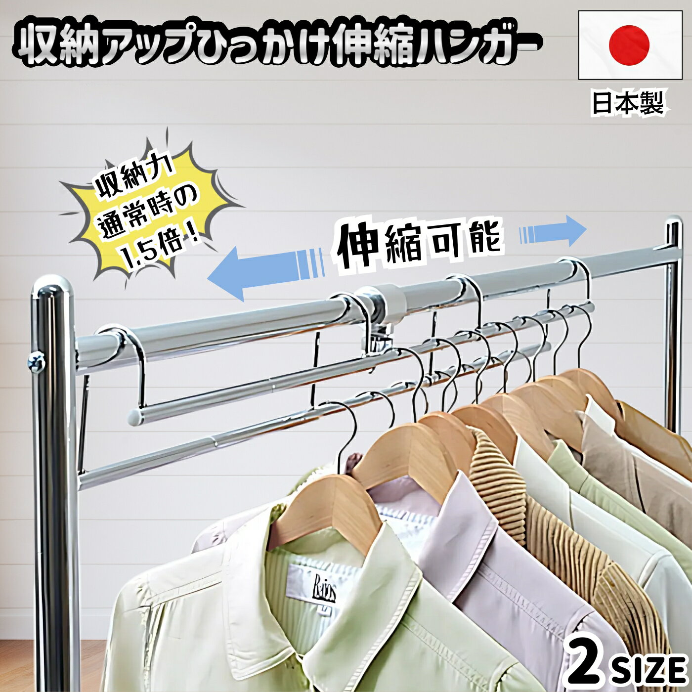 ハンガー 収納アップハンガー ダブル収納ハンガー 伸縮タイプ 日本製 収納力アップ 1.5倍収納 衣類収納アップハンガー 段違い 薄型設計 コンパクト スッキリ収..