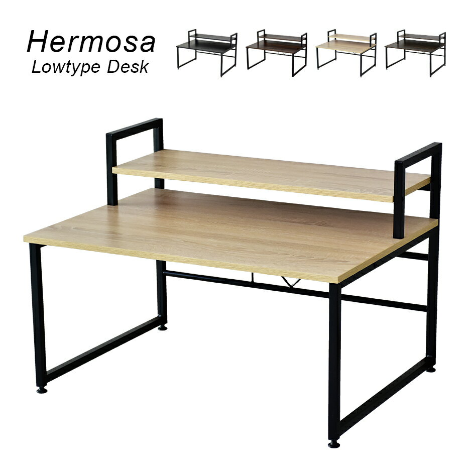 - パソコンデスク ロータイプ コンパクト デスク 机 ゲーミングデスク ゲーム モニター台付き 木目調 おしゃれ キーボード収納 ローデスク軽量 ストッパー付