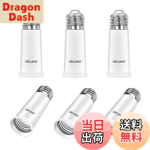 【送料無料】DiCUNO E26→E26 口金延長アダプター E26 延長ソケット 約6.5CM延長する 難燃性材料PBT 6個セット