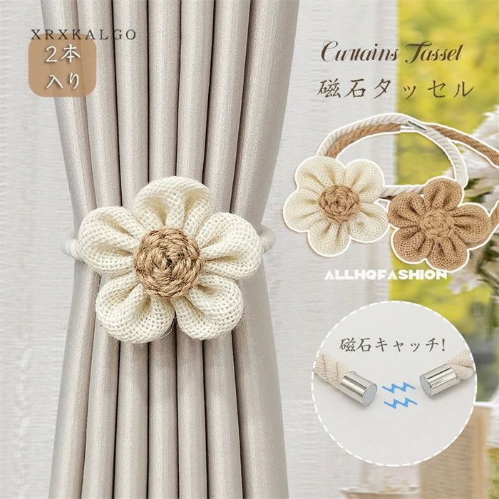 - カーテンタッセル 花 磁石 模様替え ベージュ カーキ