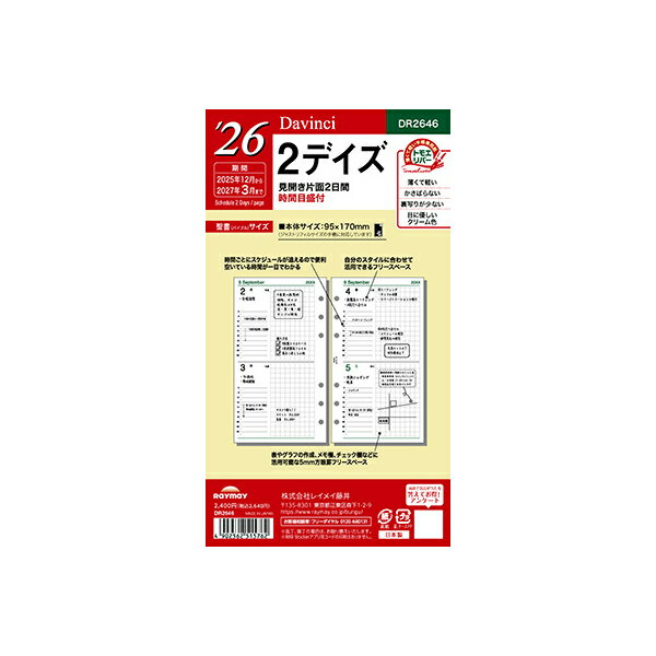 レイメイ藤井 システム手帳リフィル 2026年 ダ・ヴィンチ DR2646 聖書 2デイズ リフィル レフィル スケジュール帳 ビジネス手帳 ダイアリー システム手帳 Raym..
