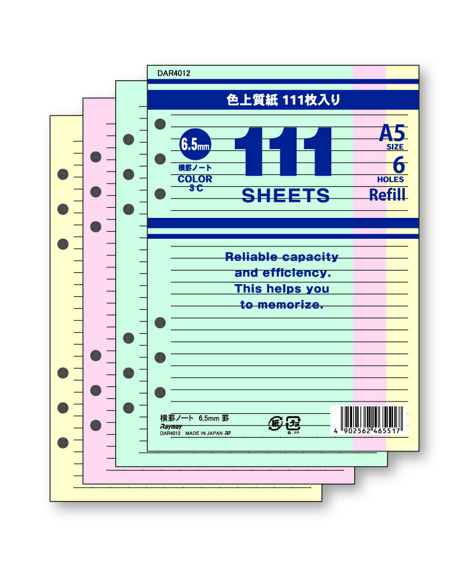 レイメイ藤井 システム手帳 リフィル DAR4012111徳用 リフィル (A5) 横罫ノート 6.5mm罫 3色込 A5サイズ Raymay スケジュール帳 レフィル ビジネス手帳 ..