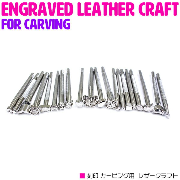 - カービング 刻印 20本 セット レザークラフト スタンピング ハンドメイド 工具 型押し 棒 模様 花 蝶 葉..
