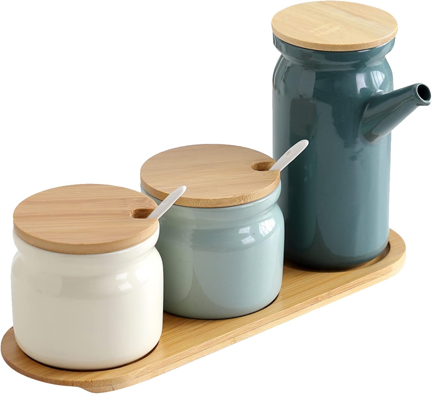 3個セット和風オイルと酢ポット蜂蜜容器蜂蜜ディスペンサー調味料ディスペンサー磁器酢瓶セラミック調味料ボトル調味料ポット酢ホルダー液体