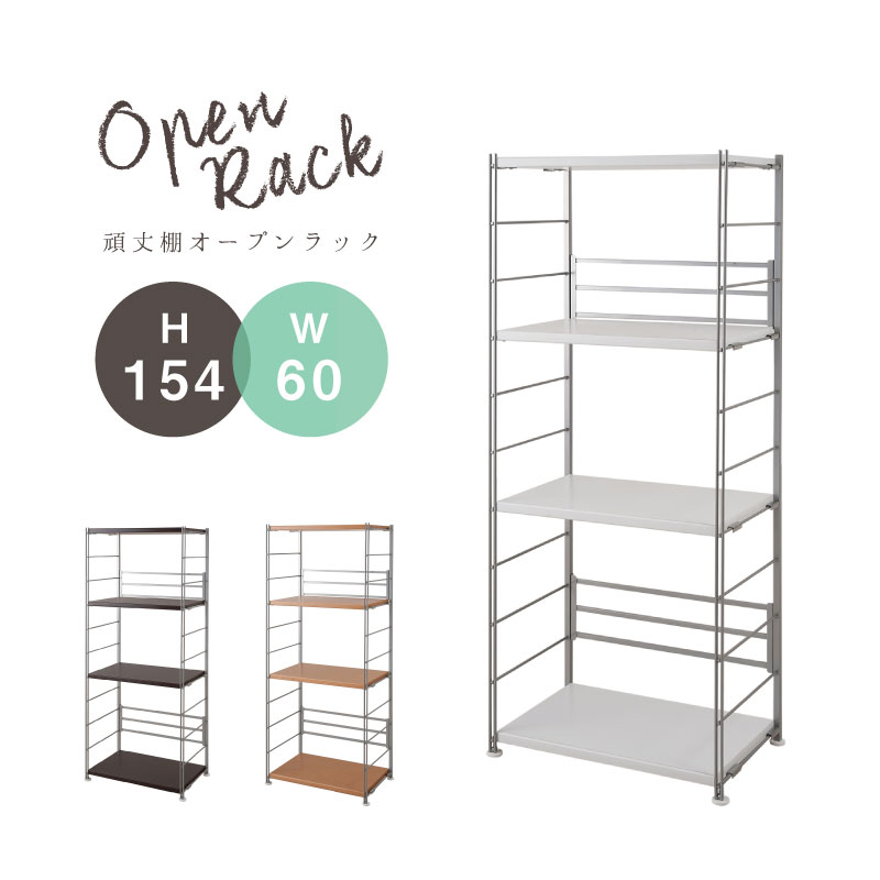 ラック 棚 オープンラック 幅60 高さ154cm 頑丈棚 ホワイト ナチュラル ブラウン 国産 シンプル ラック テレビ台 スチールラック デッドスペース 食器類 家電..