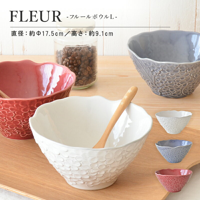 【マラソン期間☆ポイント20倍】フルール ボウル(L) 鉢 丼 おしゃれ パスタ皿 花柄 日本製 美濃焼 ボウル 陶磁器 食器 電子レンジ対応 食洗機対応 かわいい 白 ..