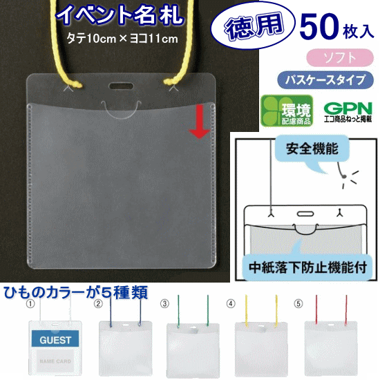 【楽天1位】イベント吊り下げ名札 50枚入り ひも付き 3色 ソフトタイプ シンプル 展示会 集会 セミナー カンファレンス
