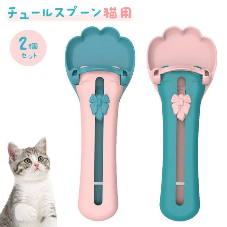 チュール スプーン 猫用 給餌器 ポータブル チュール スプーン キャットフードスプーン おやつ押出器 猫のスプーン 全種類の猫適用 ペットの猫用品 2個セット