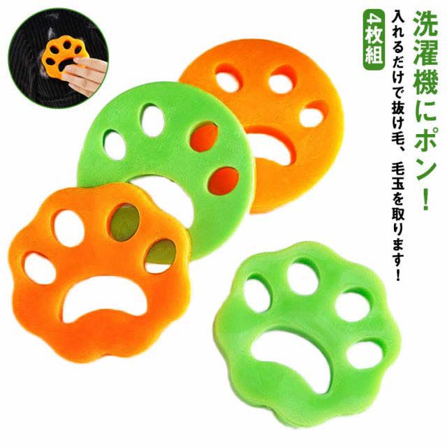 猫爪 抜け毛取り 犬 クリーナー 掃除 毛 ペット 猫 4枚組 集毛 ゴム 洗濯ボール 洗濯用 抜け毛 肉球 いぬ 抜け毛取り ねこ 洗濯