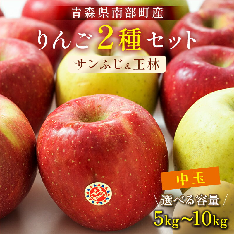 - 【ふるさと納税】 ≪容量が選べる≫ 特 (中玉) 青森産 完熟 りんご サンふじ 王林 2種セット 約5kg/約10kg..