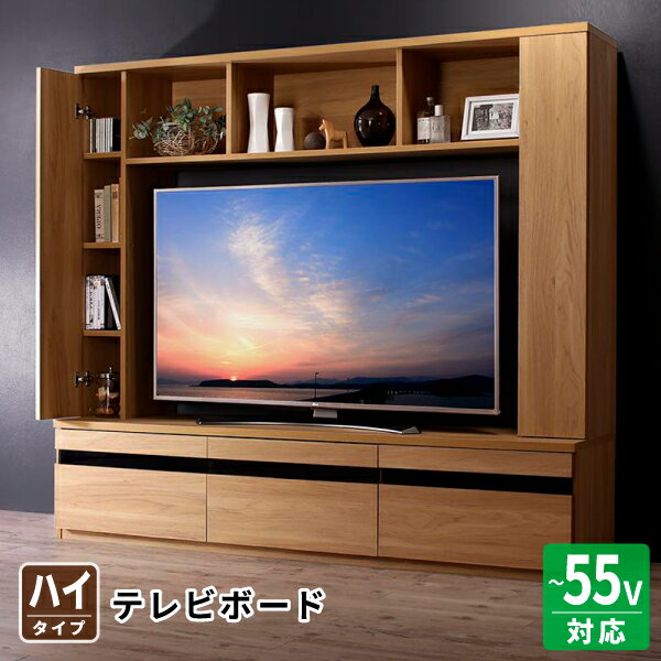 - 55型対応ハイタイプテレビボード ハイタイプテレビ台 リビング収納 北欧 木製 ローボード 55型まで オープン棚 可動棚 新生活