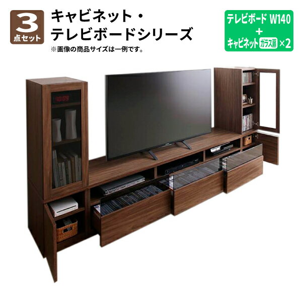 テレビボード キャビネット 3点セット(テレビボード+キャビネット×2) ガラス扉 W140 テレビ台 約幅140 ウォールナット TVボード TV台 ローボード キャビネット..