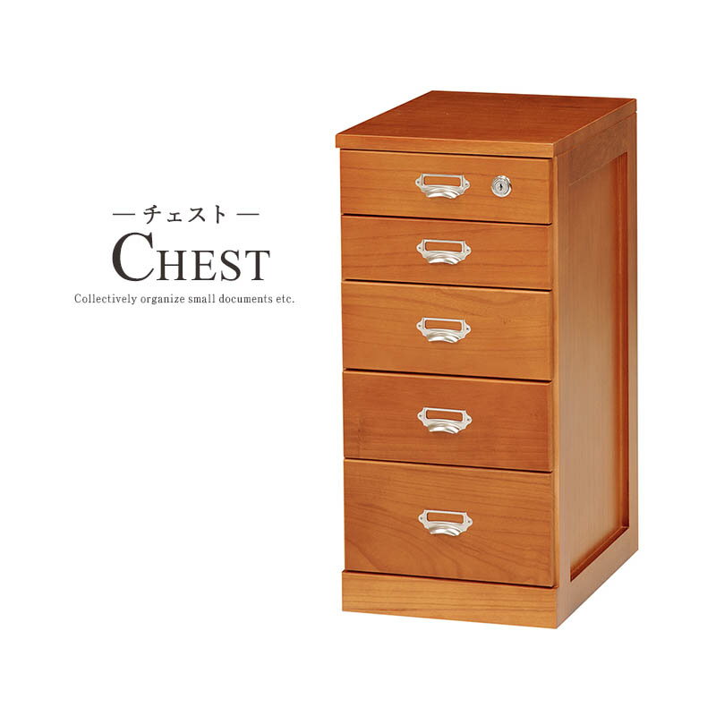 - チェスト 5段 桐製の書類チェスト 細々とした書類などを一括整理 ネーム入れ 机整理 デスク整理 木製 キャスター 鍵