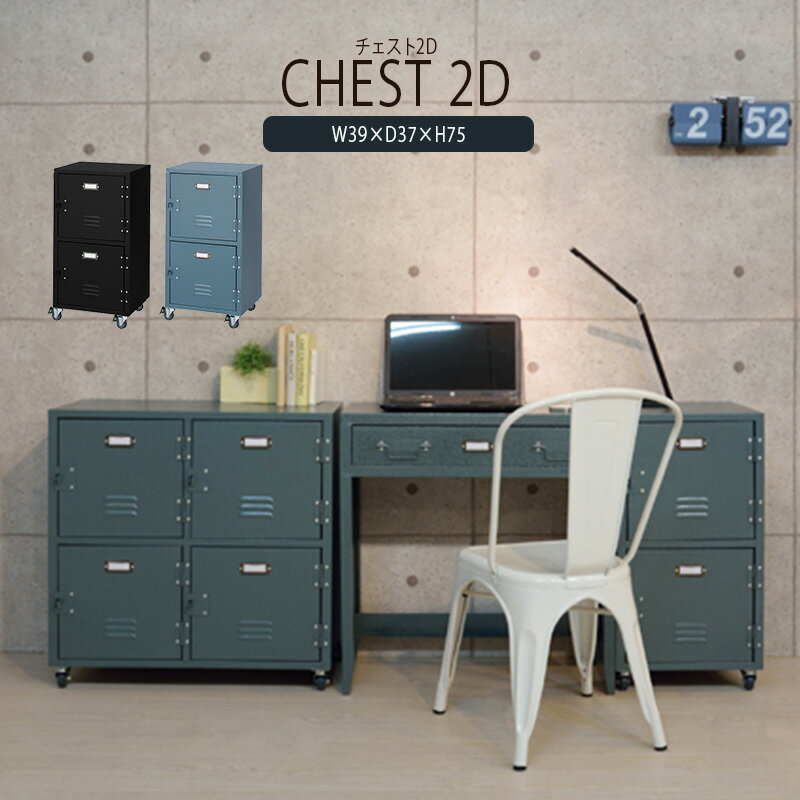 - ロッカーチェスト 2段 幅39cm スチール キャスター付き ローチェスト たんす 箪笥 小物収納 引き出し キッチン収納 収納家具 飾り棚 収納棚 高級感 ブルックリン 西海岸 男前