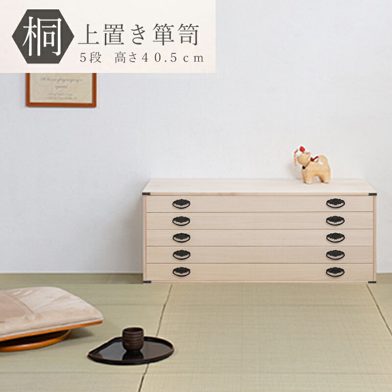 桐たんす 桐上置き用 5段 高さ40.5cm チェスト 完成品 国産 桐タンス 桐箱 衣装ケース 着物 和装収納 桐ケース 衣類収納 収納箱 浴衣 ローチェスト 和タンス ..