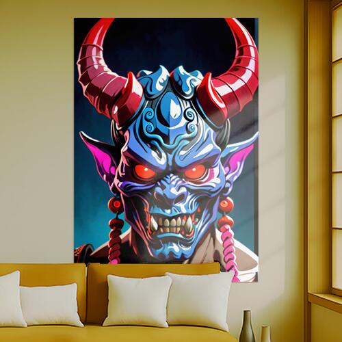 鬼 悪魔 角 妖怪 伝説 タペストリー 和モダン 和柄 浮世絵風 刺青風 昭和レトロ 壁掛け 大判 長方形 タトゥー ジャパニーズ 男気 アウトロー 壁布 青 赤 ピンク