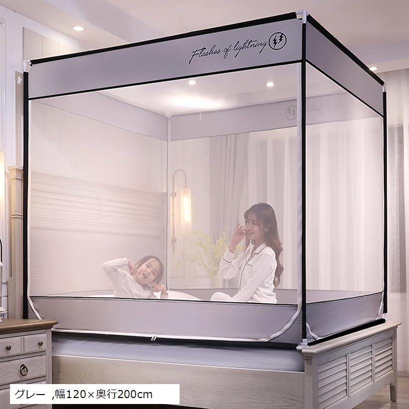 【楽天ランキング1位入賞】蚊帳 折りたたみ式 モスキートネット 転落防止 大人子供兼用 日本語説明書付き グレー 幅120x奥行200cm