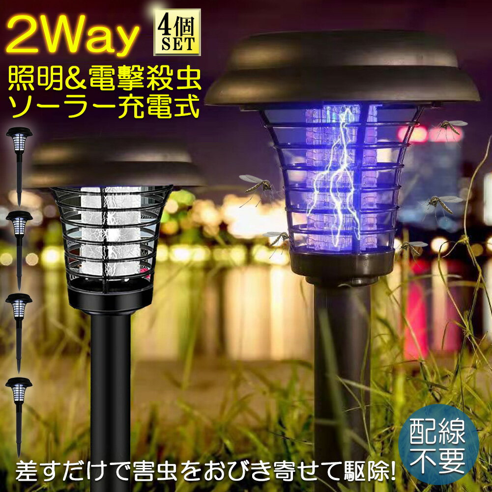 電撃殺虫器 ガーデンライト ソーラーライト 4点セット 電撃 殺虫ライト 埋め込み 自動点灯捕虫器 照明ランプ 強力蚊除け 害虫退治 高圧電撃 太陽光で充電 電気..