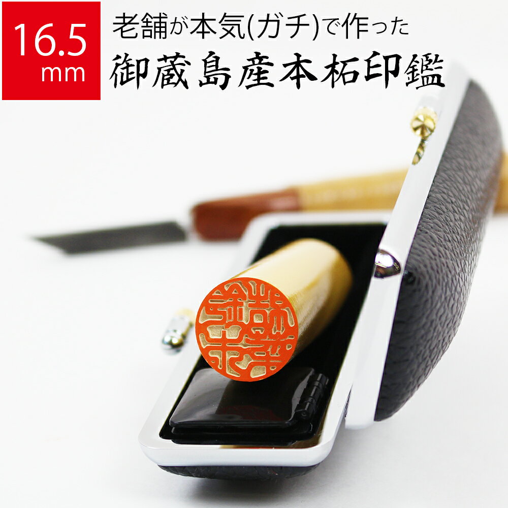 【エントリーでポイント10倍】印鑑 はんこ 銀行印 御蔵島産本柘 ケースあり 実印 認印 個人印 ハンコ 仕事 職場 16.5mm丸×60mm 牛もみ革ケース 10年保証