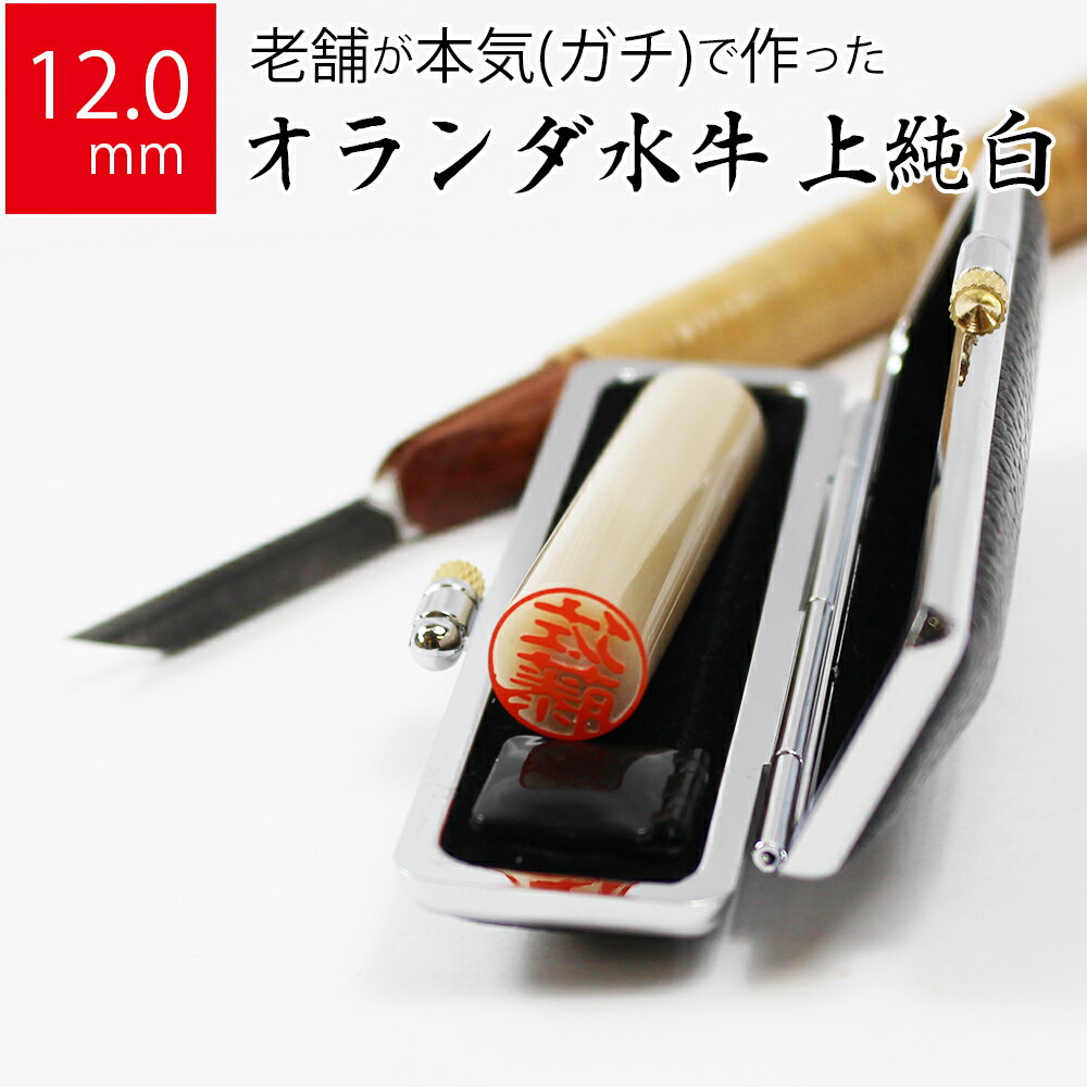 【エントリーでポイント10倍】印鑑 はんこ 銀行印 オランダ水牛 純白上 ケースあり 実印 認印 個人印 ハンコ 牛もみ革 セット 12.0mm丸×60mm 10年保証