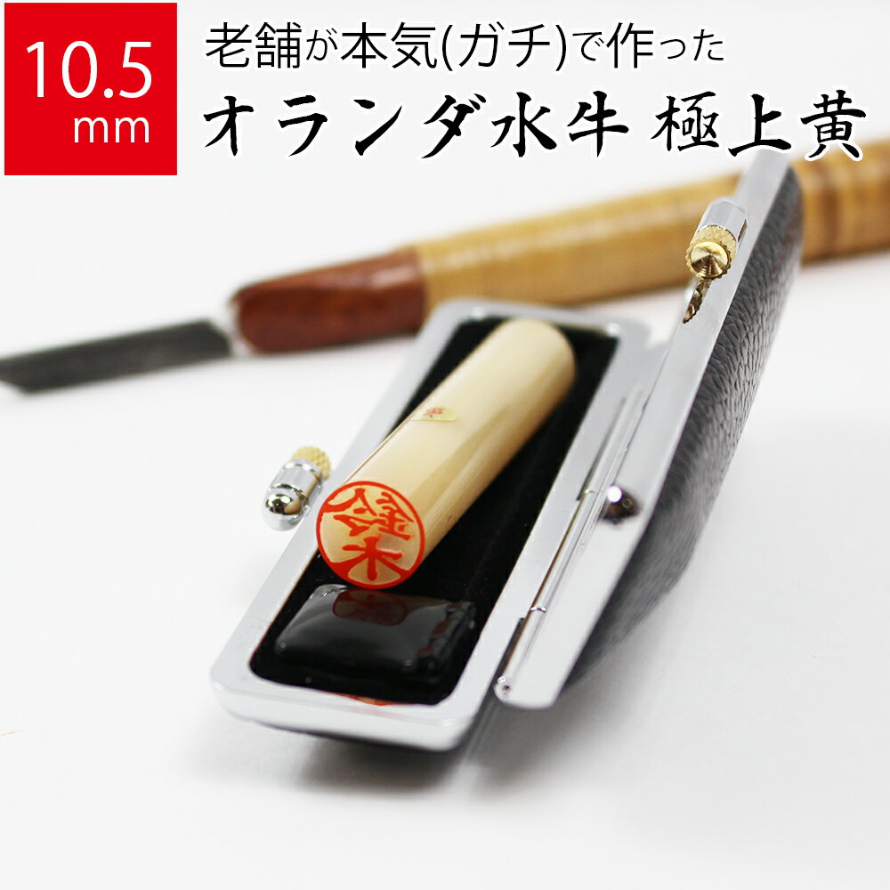 【エントリーでポイント10倍】印鑑 はんこ 銀行印 オランダ水牛 極上黄 ケースあり 実印 認印 個人印 ハンコ 牛もみ革 セット 10.5mm丸×60mm 10年保証