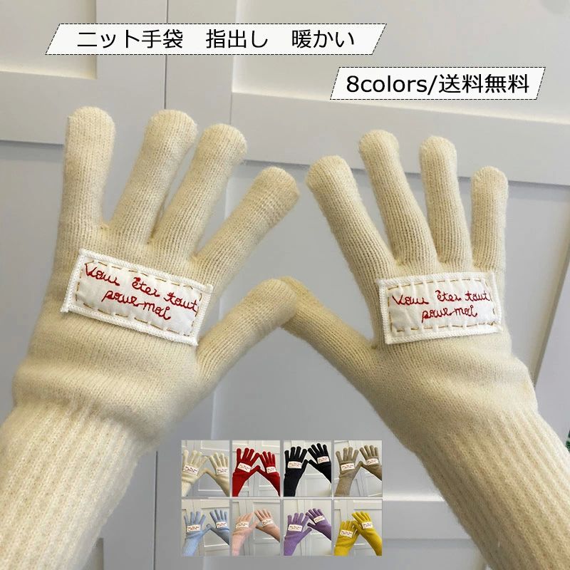 グローブ ニット手袋 手荒れ スマホ対応 可愛い 五本指 暖かい ハンドウォーマー シンプル 指 レディース 指出し 防寒対策 秋冬