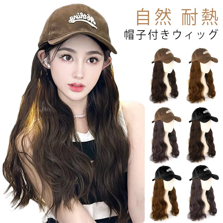 - 髪の毛付き ウィッグ かつら キャップ 帽子ウィッグ キャップ レ