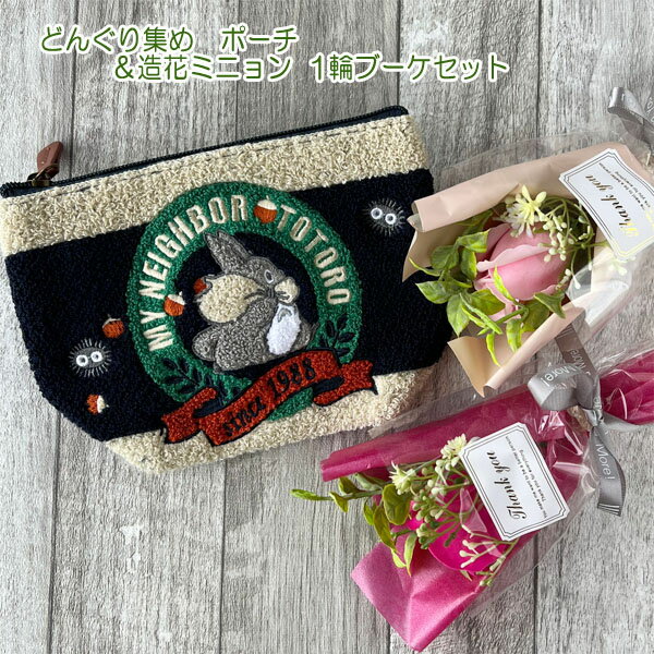 ジブリ グッズ となりのトトロ どんぐり集めポーチ&造花ミニョン1輪ブーケセット(ブーケ色選択式) スタジオジブリ ホワイトデー キャラクター