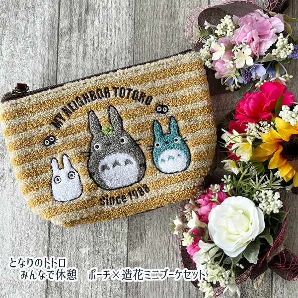 ジブリ グッズ となりのトトロ みんなで休憩ポーチ×造花ミニブーケセット スタジオジブリ トトロ母の日 ホワイトデー キャラクター