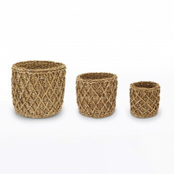- ジュートシリンダーバスケット3SET グレー 13623812157 小物整理や収納にぴったりなナチュラルアイテム!