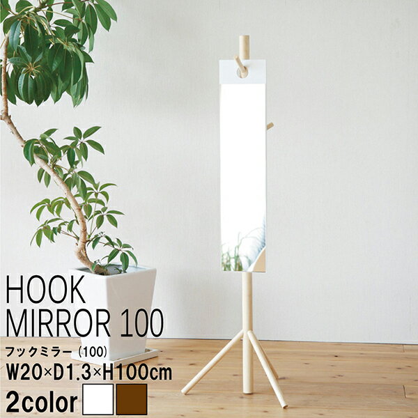 送料無料 省スペース フックミラー 100 スリム コンパクト 日本製ミラー 収納 国産 ウォールミラー 壁掛け オフィス 玄関 リビング 着付け 着替え おしゃれ 飛..
