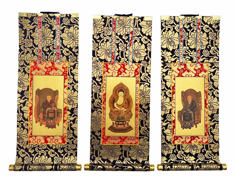仏具 掛軸 臨済宗妙心寺派 上仕立 紺表装 3枚セット 60代 掛け軸 セット 仏具セット