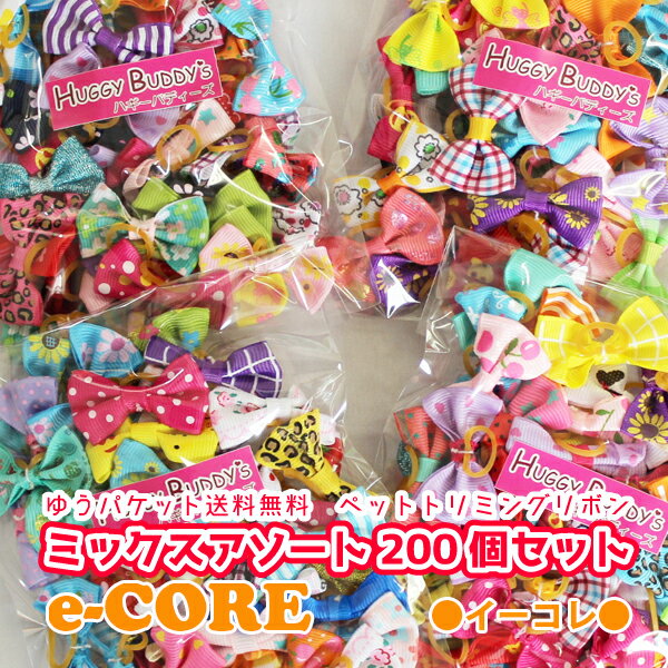 【動画あり】ペットトリミングリボン ミックスアソート 業務用200個セット(1個当たり24.9円!) 業務用・プロのサロン様にも♪ペットリボン(ハギーバディーズ)