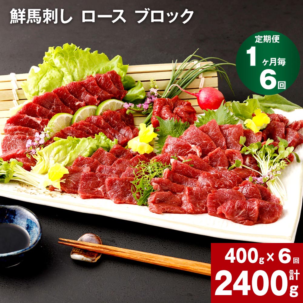 【ふるさと納税】【定期便】【1ヶ月毎 1回】鮮馬刺し ロース ブロック 計2計400g 計400g×6回 馬刺 馬肉 肉 馬 国産 生食用 冷凍 タレ付き 柔らかい 熊本県産