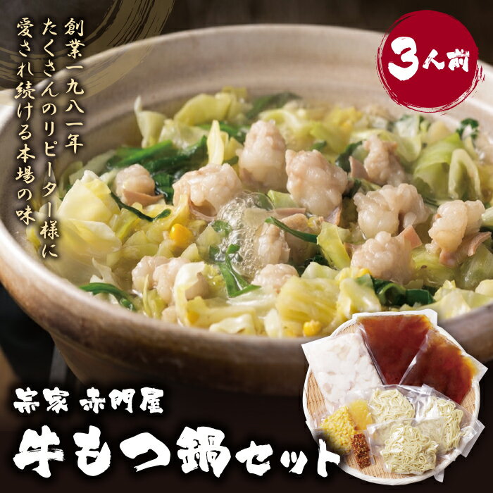 【ふるさと納税】 宗家 赤門屋 牛もつ鍋 醤油味セット(3人前)国産牛 モツ鍋 老舗 あかもんや 福岡県 ご当地グルメ 送料無料