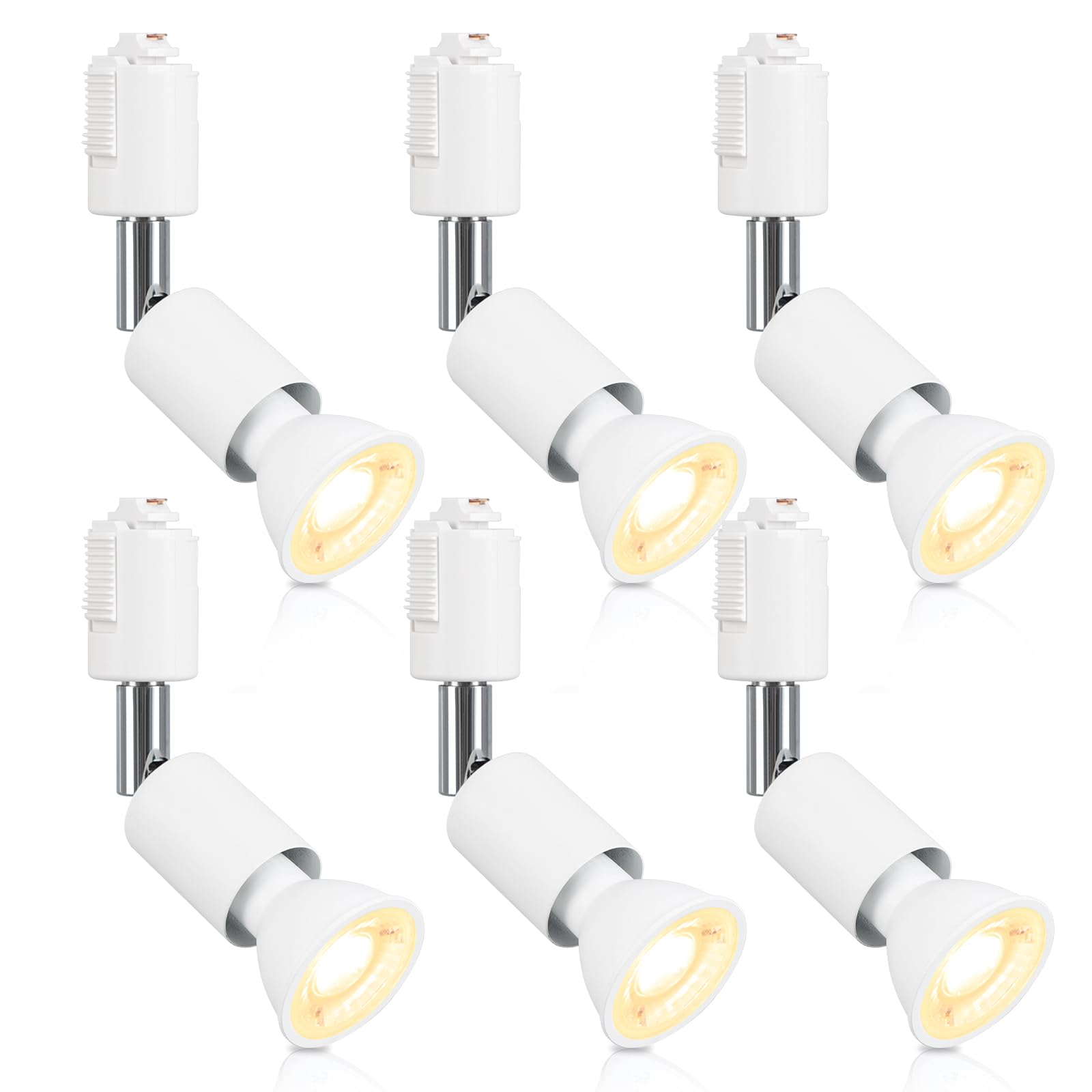 xydled ダクトレール用スポットライト E11 LED電球付き 50W ライティングバー用器具セット ライティングレール 天井照明 6個セット (電球色, ホワイト器具)