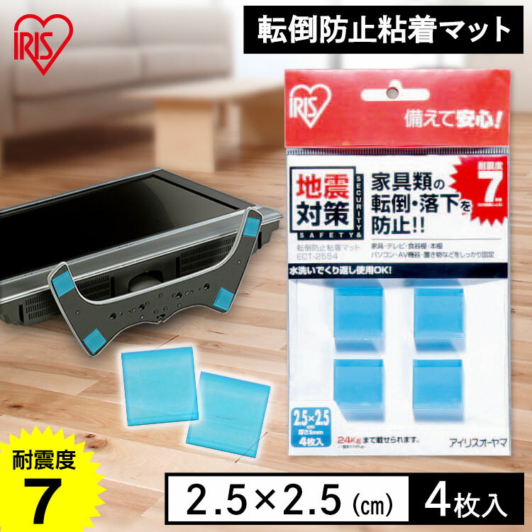 転倒防止グッズ 地震 転倒防止 粘着マット シール 転倒防止粘着マット アイリスオーヤマ 4枚入り 2.5×2.5cm 防災用品 防災 地震対策